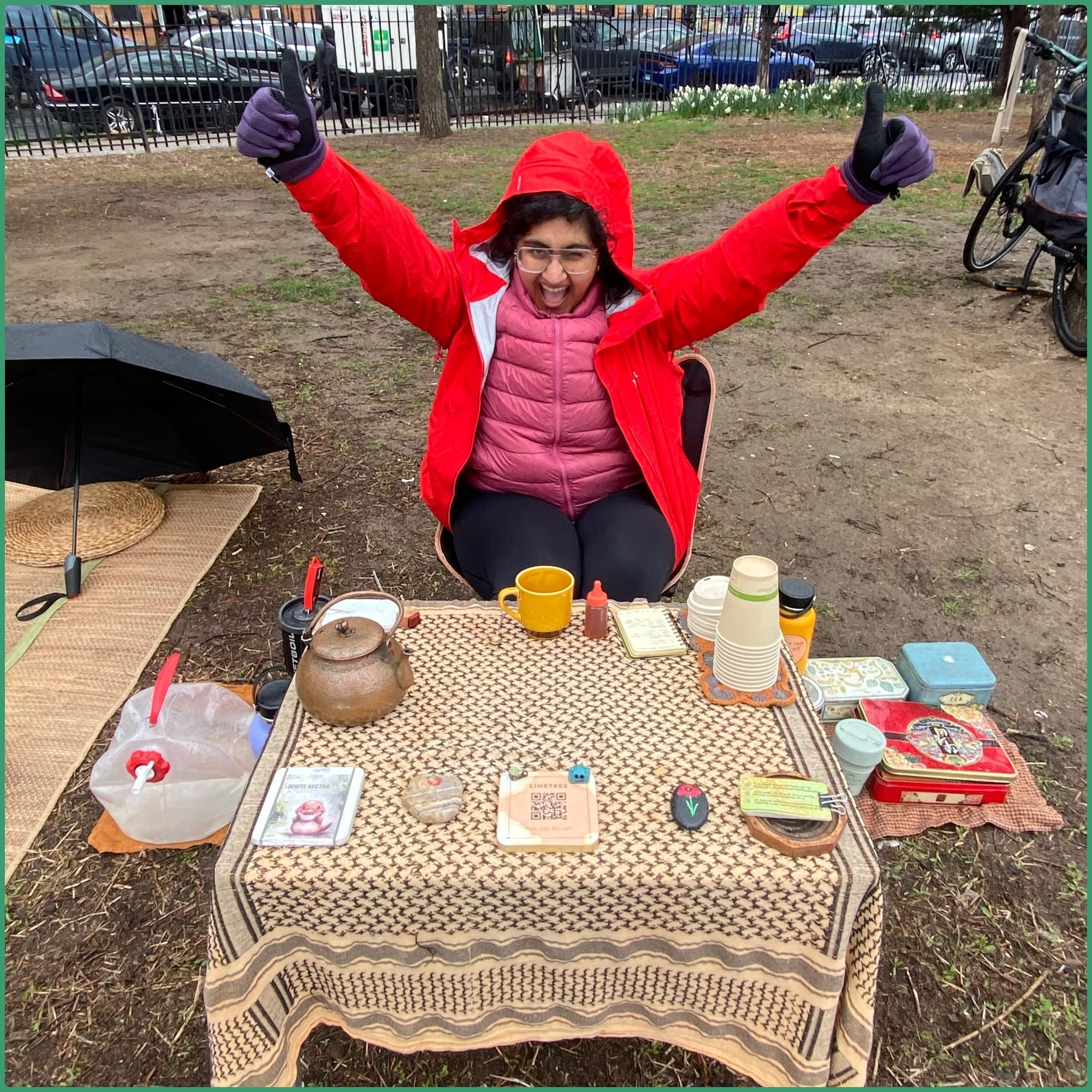 Every single day of April, from 12-6pm, you can get some free tea at The Tea Stand in Maria Hernandez Park (specifically the northwest corner here), rain or shine.
