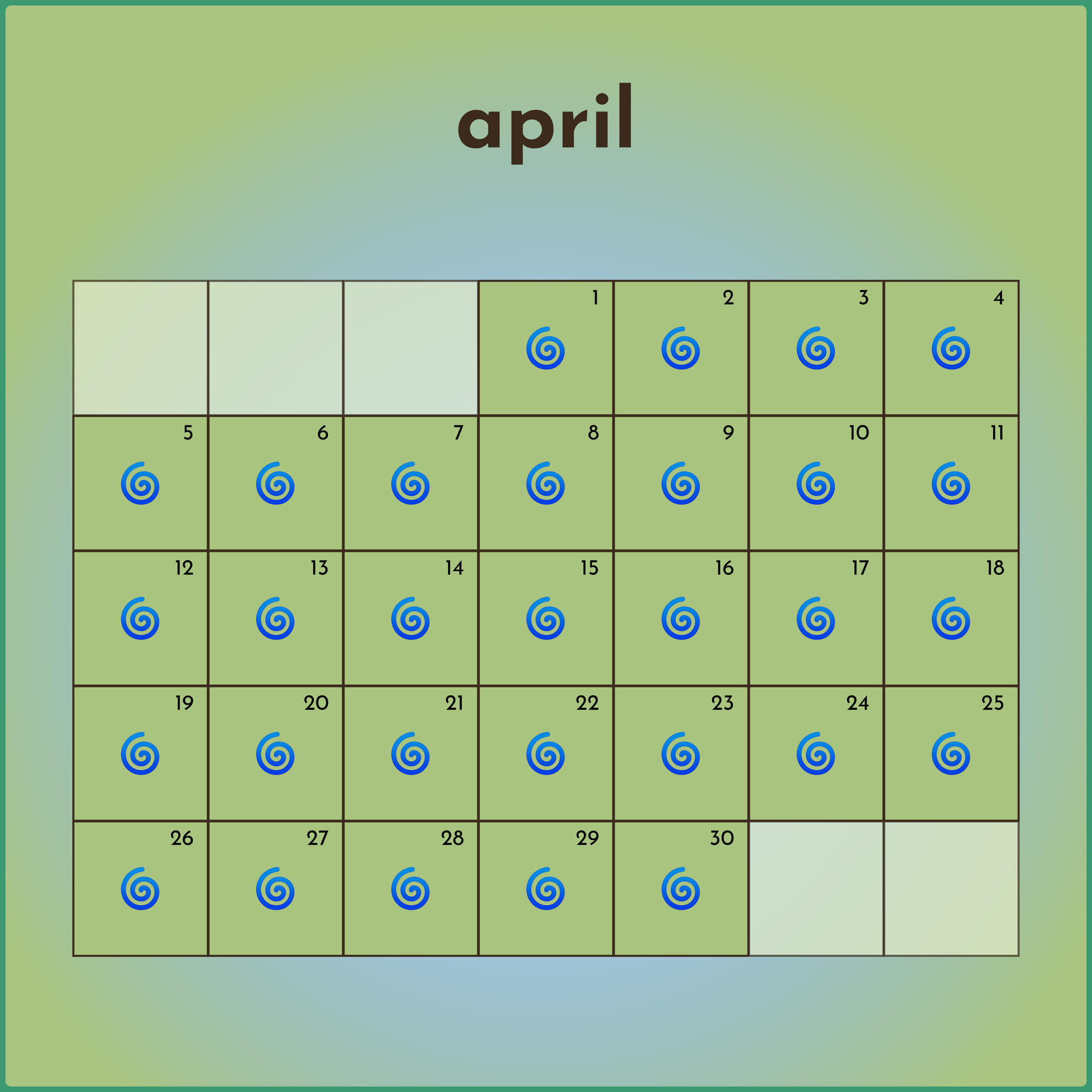 But first, our April calendar:
