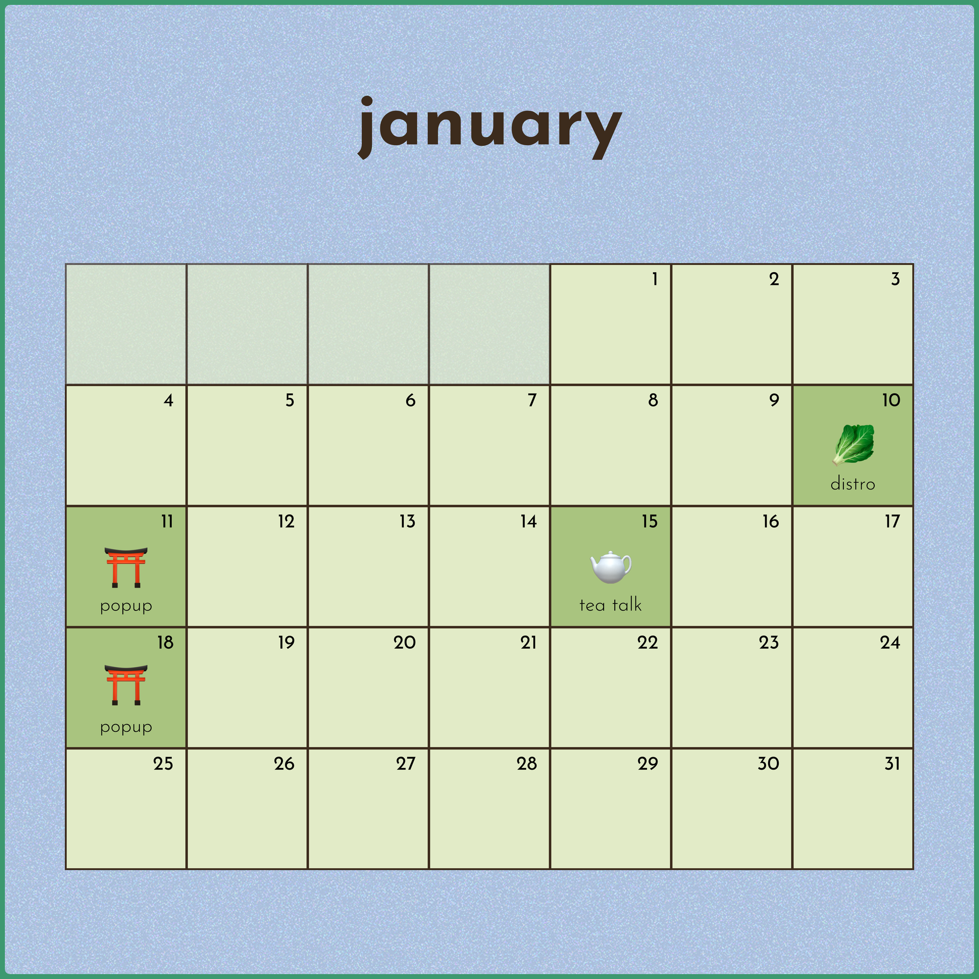 - 3 unique teas โ a smoky Sagittarius black tea, a complex "jade cloud" green tea, and a wintry herbal blend formulated by local herbalist Serena Kleeman!