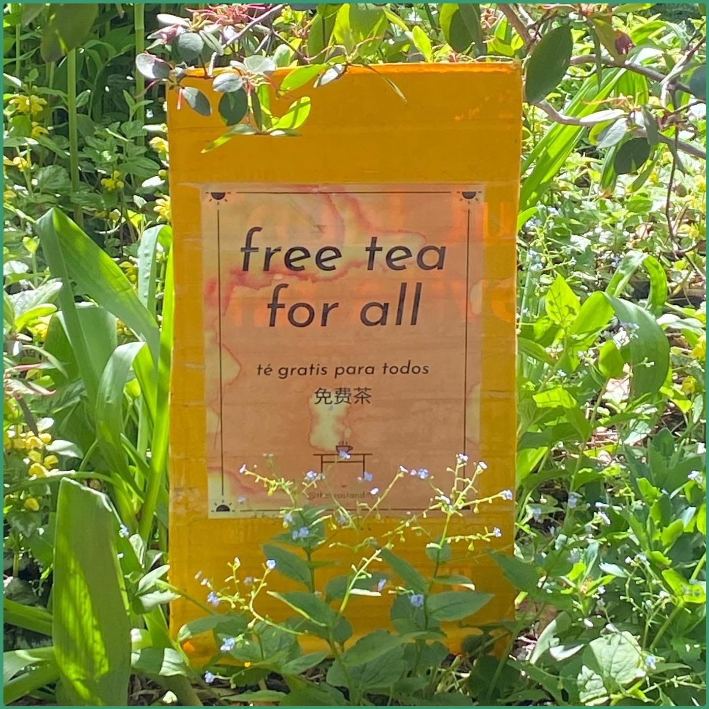Why is the tea free? Because when you take money out of the interaction, you replace it with trust. By refusing to quantify the value of the tea (or anything, for that matter), we turn it from a commodity into a gift. And when you receive a gift from a stranger, it usually prompts any or all of the following thoughts: this is so nice! i feel loved! // do i need this? who might need it more? // what gifts do i have that i can offer the people around me? // what else is free? These are some really great questions that we (modern humans, Americans, white folks, etc.) ought to spend more time thinking about & acting upon.