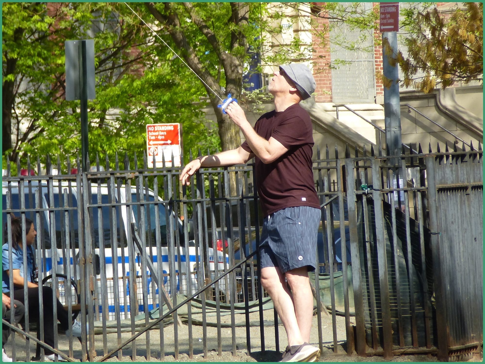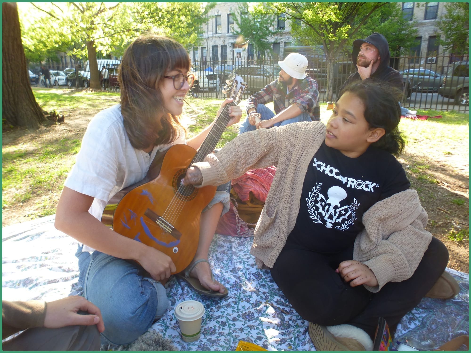 A person named Joe sat down on the mat and chatted with my stepmom, Kelly, for two hours. Once Joe left, Kelly exclaimed, “I just met Joe today and I’m sad to say goodbye!” Later, a chill guy with a guitar sat next to her and riffed spontaneous musings on life and the park. The regulars came by, too. My dad was especially excited to meet Jose (the star of the pod). They sat beside the mat, took in the sun, and chatted like buddies. My dad also spent a chunk of the day trying to fly a kite and holding on once it was finally more than a foot away from him.
