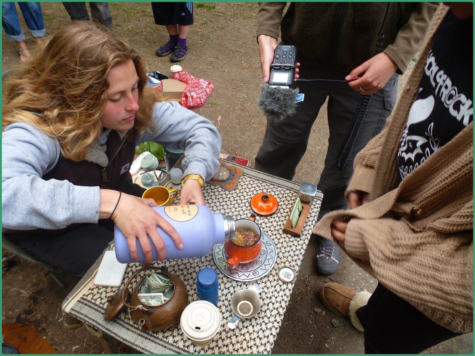 As the clock struck noon, my little sister jumped out and yelled “Could I get some free tea?!” I was shocked. No way. I shouted “Zolaaaaaaaaa!” and looked around to see a gaggle of family members have joined my 11-year-old sister in coming to Maria Hernandez Park all the way from Ohio.