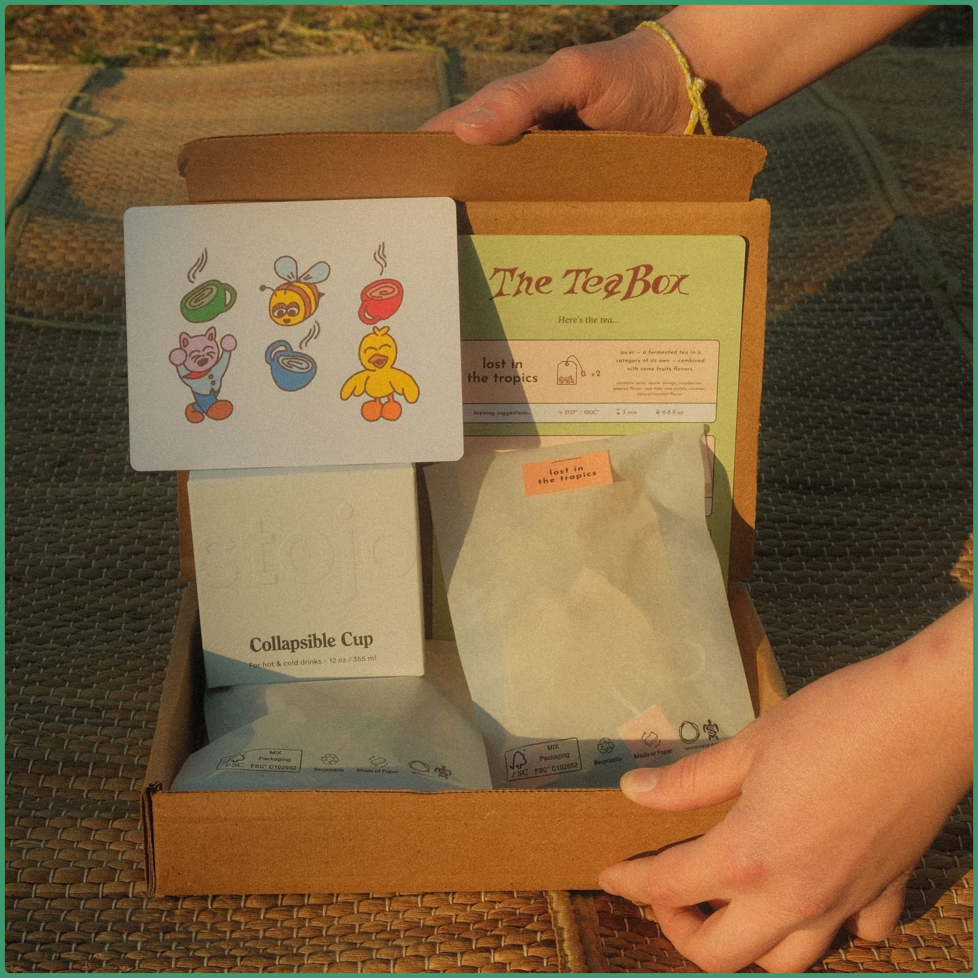 The Tea Box is a parcel containing curated teas and locally-made art.