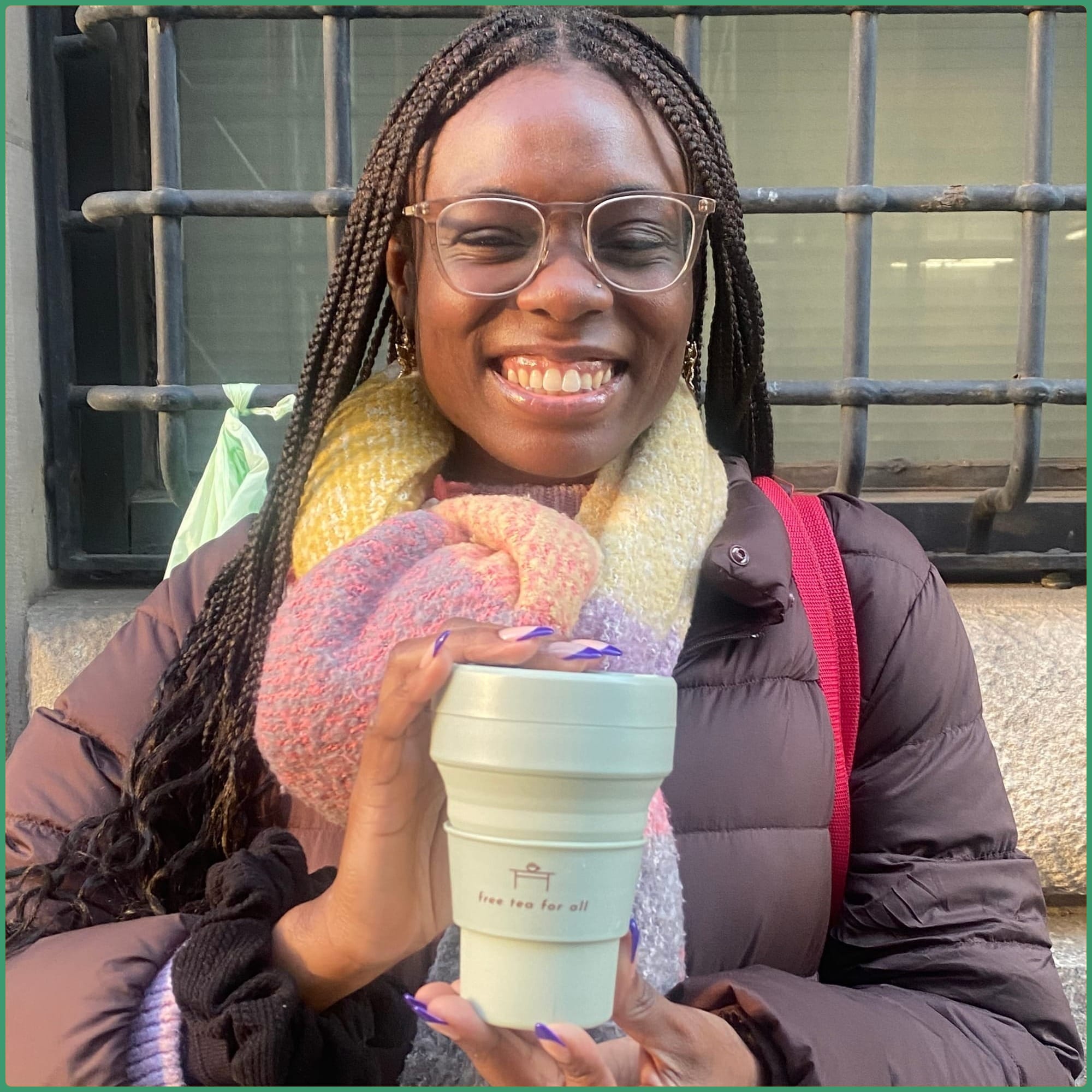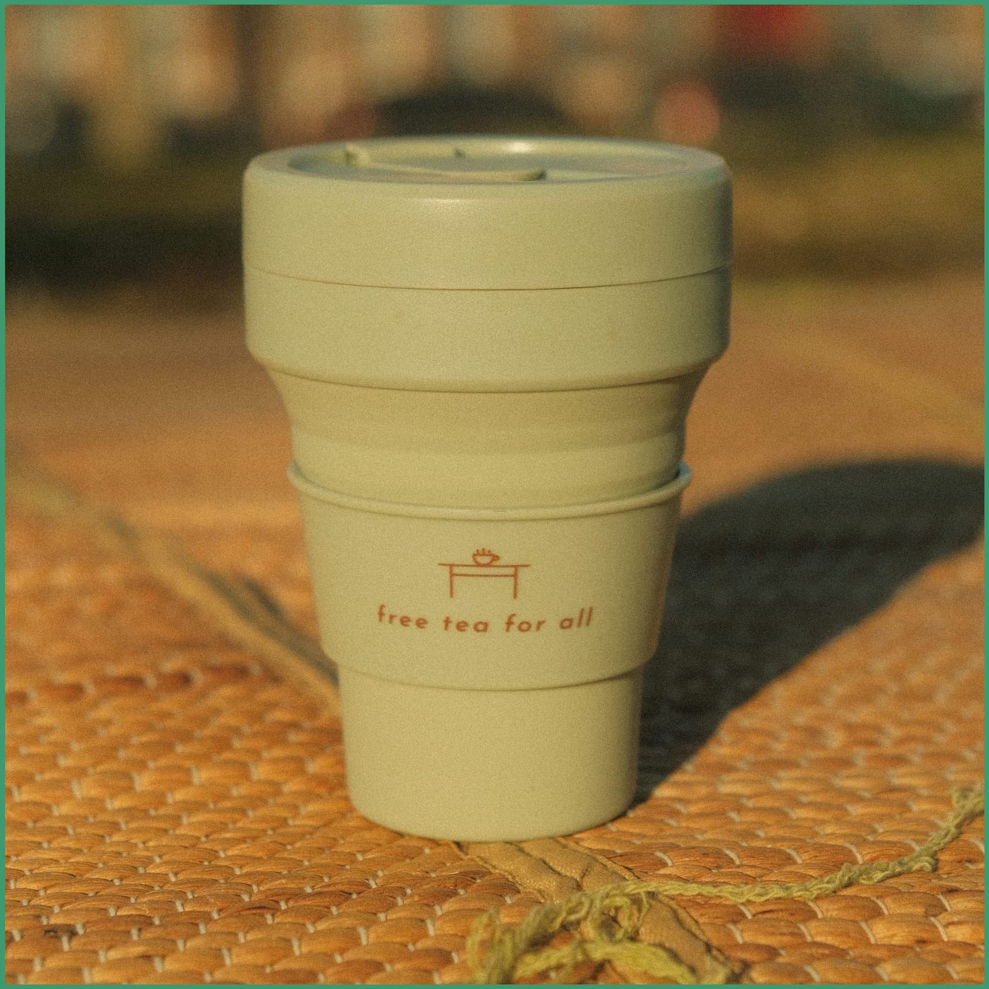 Made by Stojo, the Travel Cup is a collapsible, endlessly reusable 12oz cup. The cup sleeve is printed with our motto: free tea for all. And it's dishwasher safe!